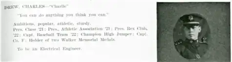 Charles Drew's 1922 Dunbar High School yearbook entry.