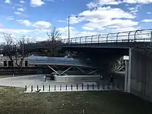 The Charles Richard Drew Memorial Bridge over the east entrance to the Brookland-CUA Metro Station