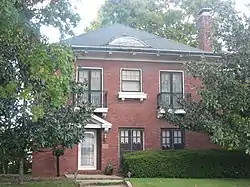 The Charles and Naomi Bachmann House is a historic house located at 401 S. Walnut St. in Salem, Illinois. The house was built in 1929 for Charles Bachmann, a local furniture salesman, and his wife Naomi. Architect William Morrow designed the house using a plan from a book published by the Architects' Small House Service Bureau. The Architects' Small House Service Bureau, which was endorsed by the American Institute of Architects, was organized to provide plans for builders of small houses, most of whom could not afford professional architects. The Bachmann House's plan incorporated elements of the Classical Revival and Mediterranean Revival styles. The house's design features two second-floor iron balconies with decorative acanthus brackets, a pediment above the front door, and a tile roof.[2]