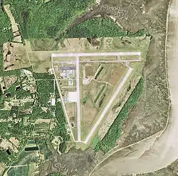 The airport covers 1,373 acres (556 ha) at an elevation of 19 feet (5.8 m). It has two concrete runways: 9/27 is 5,350 by 150 feet (1,631 x 46 m) and 4/22 is 4,313 by 150 feet (1,315 x 46 m).[1]