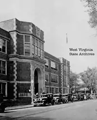 ![]() Charleston High School, Washington Street entrance. From yearbook Charlestonian, 1933, West Virginia State Archives | |