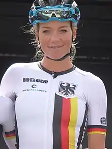 Charlotte Becker (born 19 May 1983 in Datteln, North Rhine-Westphalia) is a German professional racing cyclist, who currently rides for UCI Women's Continental Team Arkéa Pro Cycling Team.[3] She competed at the 2012 Summer Olympics in the women's road race, but finished over the time limit. She also competed on the track in the women's team pursuit for the national team. She signed for Team Hitec Products for the 2015 road cycling season.[4]