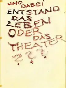 Life? or Theater? is intended as a Gesamtkunstwerk, a Wagnerian 'total work of art' within the tradition of the ambitious nineteenth-century German idea to fuse poetry, music and the visual arts. Yet Salomon's work is a reversal of that tradition which was intended to be the ultimate manifestation of Germanic culture – instead it is a work created by a "young woman who belonged to a supposedly alien race and who was therefore held not to even have a right to exist, let alone a place in society."[23]