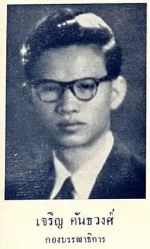2. "เปิดประวัติ "เจริญ คันธวงศ์" อดีตรัฐมนตรี เจ้าของฉายา คนดีศรีสภา". prachachat.net (in Thai). 4 May 2022. Retrieved 9 May 2022.