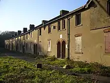 The 1870s magazines at Chattenden remain in situ (though vulnerable to subsidence - a problem first identified soon after their completion); they were latterly used for general storage. Several magazines and other structures also survive at Lodge Hill. The 1872 Barracks quadrangle, with its central clock tower, was vacated in 1961 and demolished;[7] (the clock itself was moved to Portsmouth Royal Dockyard and not long afterwards was installed in the pediment of No. 11 Storehouse alongside HMS Victory).[8] The following year a new barracks for RSME was built on the site; this remained in use until the 1990s and was itself demolished in 2005.[9] The Defence Explosive Ordnance Disposal School was housed in a separate complex (Lodge Hill Camp) along with the National Search Centre (a joint Ministry of Defence / Home Office facility providing training in Explosive Ordnance Disposal and search training for the police and other civilian agencies). The surrounding landscape provided training areas for these institutions; a pair of Victorian terraces, which once housed the on-site police force, were used for explosives search training and other structures were built expressly for this purpose. Bridge-building and other engineering training also took place on the site, and there was a specialist diver training facility in Lodge Hill Camp.[9]