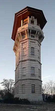 The Chișinău Water Tower (Romanian: Turnul de apă din Chișinău) is an architectural monument of Chișinău, Moldova, located at 2 Mitropolit Bănulescu-Bodoni Street and built at the end of 19th century after a project by Alexander Bernadazzi. It was a main part of Chișinău's water system. The upper level was built of wood and was destroyed by an earthquake. It was rebuilt between 1980 and 1983. It currently hosts Chișinău City museum, which contains items dating from 15th to 20th centuries. The upper level is a space for exhibitions of both legacy and modern paintings and photographies, as well as various cultural events.[1]
