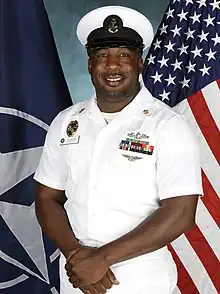 Chief Petty Officer (CPO) is the seventh enlisted rank (with the paygrade E-7) in the United States Navy[1] and U.S. Coast Guard, is above Petty Officer First Class and below Senior Chief Petty Officer. The term "rating" is used to identify enlisted job specialties. In this way, enlisted personnel are segregated into three segments containing different enlisted ranks. Furthermore, rates are broken down into three levels: non-rated members without a designated occupation (E-1 through E-3). Advancement to E-4 and above is dependent on graduating from a specialty school that define what the enlisted is rated for. Petty officers (E-4 through E-6) and chief petty officers (E-7 through E-9) are part of the rated force and considered extremely knowledgeable about their particular rating. Examples include Culinary Services Chief and Aviation Maintenance Chief.[2] The Chief Petty Officer is the rank. Gunners Mate is a rating. E7 is a pay grade. The term rating is used to identify the career field of a chief petty officer. For example, the title of a chief petty officer in the Master-at-Arms rating would be spoken or spelled out as Chief Master-at-Arms. The title would be abbreviated MAC. The grade of chief petty officer was established on 1 April 1893 in the United States Navy.[3] The United States Congress first authorized the Coast Guard to use the promotion to Chief Petty Officer on 18 May 1920.[4] Chief petty officer is also the final cadet grade in the United States Naval Sea Cadet Corps.