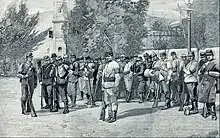 The Pisagua regiment (3rd line of the congressional forces) in the Viña del Mar square, after the battles of Concón and Placilla.