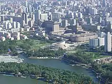 The China Millennium Monument (simplified Chinese: 中华世纪坛; traditional Chinese: 中華世紀壇; pinyin: Zhōnghuá shìjì tán) is a monumental complex centered around a structure that evokes both a monumental Chinese altar and a sundial. Associated with Jiang Zemin, it was championed from 1994 by CCP official Zhu Xiangyuan.[1] It was completed in 1999 ahead of the Millennium celebrations, for which it was the principal Chinese venue. Since 2006, it has housed the Beijing World Art Museum.[2]