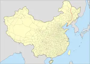 China National Highway 202 (G202) runs from Heihe in Heilongjiang to Lushunkou in Liaoning. It is 1,818 kilometres in length and runs south from Heihe, going via Harbin and Shenyang.