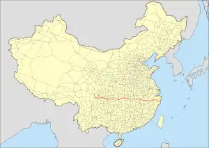 China National Highway 351 is a partially completed highway in China. The highway starts at the Port of Taizhou and runs halfway across the country to Dawei, Xiaojin County. The highway passes through the provinces of Zhejiang, Jiangxi, Hubei, Chongqing, and Sichuan. In 2017, the provincial government of Zhejiang approved the construction of the Zhejiang section of the highway.[1][2][3]