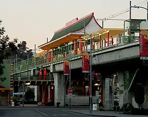 Chinatown station is an elevated light rail station on the A Line of the Los Angeles Metro Rail system. It is located along Spring Street above College Street in the Chinatown neighborhood of Los Angeles, just north of Downtown Los Angeles.[1] This station opened on July 26, 2003, as part of the original Gold Line, then known as the "Pasadena Metro Blue Line" project.