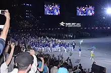 Use of the label came under vigorous renewed criticism during the run-up to the 2017 Summer Universiade, hosted in Taiwan.[75] Taiwanese legislators Huang Kuo-chang in particular lambasted the English-language guide to the Universiade for its "absurd" use of the label, illustrating this with statements extracted from the guide rendered nonsensical by their author's insistence on completely avoiding the name "Taiwan" not only when referring to the label under which Taiwanese athletes compete, but even when referring to geographical features such as the island of Taiwan itself.[76] These statements included "Introduction of our Island: ... Chinese Taipei is long and narrow that lies north to south", and "Chinese Taipei is a special island and its Capital Taipei is a great place to experience Taipei's culture." Huang added sarcastically, "Welcome to Taipei, Chinese Taipei!"