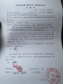 - ↑ "Coronavirus: Wuhan police apologise to family of whistle-blowing doctor Li Wenliang". South China Morning Post. 20 March 2020. Retrieved 19 March 2020.
