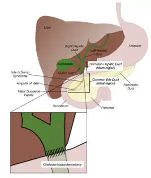 - 1 2 Abraham H, Thomas S, Srivastava A (2017-08-04). "Sump Syndrome: A Rare Long-Term Complication of Choledochoduodenostomy". Case Reports in Gastroenterology. 11 (2): 428–433. doi:10.1159/000477335. PMC 5624249. PMID 29033759.