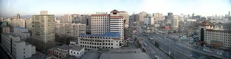ᡩᡠᡴᠠ; Möllendorff: šu be wesihulere duka) was a gate that was part of Beijing's city wall in what is now Dongcheng District. The gate stood in the southeastern part of Beijing's inner city, immediately south of the old Beijing Legation Quarter. In the 1960s, the gate and much of the wall was torn down to make room for Beijing's second ring road. Today, Chongwenmen is marked by the intersection of Chongwenmen Nei (Inner) and Chongwenmen Wai (Outer) Street, which run north-south through the former gate, Chongwenmen East and Chongwenmen West Street, which run east-west where the wall stood, and Beijing Station West Street, a diagonal street, going northwest to the Beijing railway station. Chongwenmen is a transport node in Beijing. Chongwenmen Station is an interchange station on Lines 2 and 5 of the Beijing Subway. Chongwen District, an administrative division of the city from 1952 to 2010 and now folded into Dongcheng District, was named after Chongwenmen.