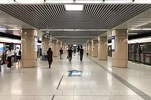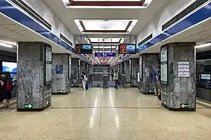 Chongwenmen Station[1] (simplified Chinese: 崇文门站; traditional Chinese: 崇文門站; pinyin: Chóngwénmén Zhàn) is an interchange station on Line 2 and Line 5 of the Beijing Subway at Chongwenmen in Dongcheng District.