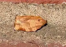 Choristoneura rosaceana, the oblique banded leaf roller or rosaceous leaf roller, is a moth of the family Tortricidae. It is native to North America, but has been accidentally introduced into other parts of the world.