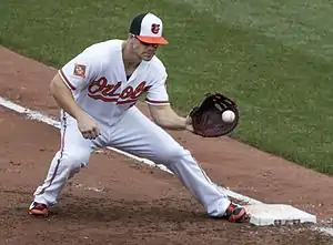 84. Gallen, David (July 30, 2013). "Ryan Flaherty starting at first base for Orioles with Chris Davis at DH". The Baltimore Sun. Retrieved August 11, 2014.