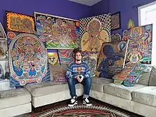 Chris Dyer (born March 3, 1979) is a Peruvian–Canadian artist based in Montreal, who exhibits, performs and teaches his art worldwide. Some of his broader artistic themes include consciousness, truth, oneness, introspection, personal development and kindness.[1] He paints using acrylic, pencil, pen, spray paint, gouache and other media on a variety of different forms, including broken or blank skateboards in his early years, various sculptured and recycled items, and now commonly fabric or wood canvas. He is also known for his murals, logos, album covers, posters, illustrations, comic books, travel diaries (The Sunlight Chronicles),[2] and YouTube adventure vlogs (Artventures).[3] He was the art director and brand manager of Creation Skateboards/Satori Movement[4] for three and a half years, creating designs for hundreds of skateboard decks. He teaches many art workshops and classes on technique, spray painting, traditional medicinal healing,[5] and the business of art, as well as offering an online class.[6] He has created his own brand of conscious clothing and other goods, Positive Creations, which features some of his most well-loved art.[7] Though his styles, mediums and subject matters are always in flow, the main theme seen through his artwork is cultural and spiritual oneness of humanity and beyond.