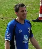 Smith committed his future to the club over the summer of 2006 and captained the team during the 2006–07 pre-season.[66][67] His first appearance of the season came in the opening match, a 1–0 victory away to Barrow on 12 August 2006,[68] before scoring from inside the six-yard box in a 2–0 victory away to Worksop on 22 August.[69] During August 2006, Smith started a spell of playing as a central midfielder after Des Lyttle moved into defence.[70] After receiving his fifth yellow card of the season in a 3–2 home defeat by Harrogate on 6 October 2006, he was suspended for Worcester's match against Hucknall on 21 October 2006.[71] He signed a new one-and-a-half-year contract with Worcester in December 2006, contracting him to the club until the summer of 2008.[72] Smith received a two-match suspension after picking up his 10th booking of the season in a 3–1 home win over Hinckley United on 20 January 2007.[73][74] This meant he missed matches against Welling United and Scarborough, before scoring on his return in a 3–3 home draw with Vauxhall Motors on 12 February 2007.[60][75][76] He missed a match against Alfreton Town on 9 April 2007 to rest an ankle, despite playing through some previous matches with this complaint.[77][78] Smith returned in the following match, a 2–1 home win over Worksop on 14 April 2007, as a 69th-minute substitute, despite not being fully fit.[79] He completed 2006–07 with 47 appearances and five goals,[60] and was named Worcester's Player of the Year.[80] Throughout the season, he often deputised as captain when Lyttle was absent.[81]