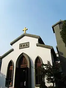 The church was originally built by missionaries of the Presbyterian Church in the United States in 1860.[1] After raising funds in 1874, John Leighton Stuart, father of John Leighton Stuart, rebuilt the church in 1875.[1] In addition, he built missionary residential buildings and men's and women's schools behind the church, forming a building complex covering an area of 53,333.33-square-metre (574,075.2 sq ft).[1] John Leighton Stuart born in the church on 24 June 1876 and lived here until he was 11 years old.[1] After John Leighton Stuart died of illness in 1913, the missionary work was replaced by Chinese priests.[1]