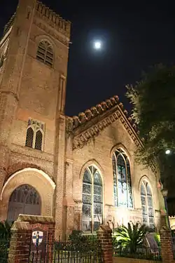 Located at 1117 Texas Avenue in Downtown Houston, the current building dates from 1893.[2] In 1938 the building suffered a major fire. A firefighter sprayed down the ornately carved rood screen to prevent its destruction, and it survived with only minor damage.[1] Everett Titcomb composed the anthem "Behold Now, Praise the Lord" for the rededication and centennial of Christ Church.[3]
