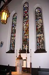 Interior updates included the addition of a white marble altar in 1900. A wooden screen was installed to separate the chancel and the congregation. Memorials included a Resurrection stained-glass window in the west end of the nave, a church history window that included a series of three windows in the north transept, a white marble baptismal font, and a bronze statue of a young Saint John the Baptist by English sculptor John Angle. In 1954 the church's inner doors and chancel were painted red, a symbol of the Holy Spirit.[14][27]