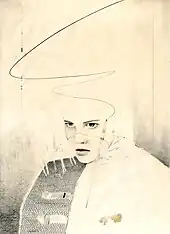 2009: During the "Sommeratelier" at Kunstverein Familie Montez, Frankfurt,[7] he created a painting for the performance "Who let the dogs out, Edith?". This "experimental collage of different media and arts" has been a dialogue with Heinrich von Kleist's play Penthesilea, directed by Hans-Jürgen Syberberg in 1988 with actress Edith Clever.[8]
