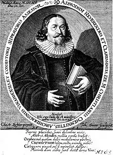 At Jena he studied under Paul Slevogt, receiving his "Baccalaurat" in 1633 and becoming, on 8 August 1637, a Master of Philosophical sciences and Theology.[3] This opened the way to a teaching career that included the Greek, Hebrew and Syrian languages[2] along with Logic, Physics, Metaphysics and Latin Letters.[3] On 14 September 1638 he became Rector of the city's school.[4]