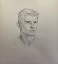 In 1945 Paul Cadmus took a pencil and watercolor on grey paper of Miller, signed and inscribed "Bill Miller" at lower left and "Cadmus 1945" at lower right, which in 1968 was in possession of Miller.[10] The portrait was purchased from a San Diego art dealer in April 2017 and is part of a private collection located in southeastern Pennsylvania. [Present owner questions the use of watercolor in the portrait, believing it to have been executed in pencil only; the paper is ivory rather than grey; and the date may be 1943 rather than 1945.]