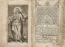 Van Dijck apparently had a strong reputation in his lifetime and beyond, aided by the connection between Protestant Britain and the Dutch Republic. Marshall considered him a "famous artist".[57] Moxon, who spent time in the Netherlands as a child and later met van Dijck on returning as an adult, wrote soon after his death that "Holland letters in general are in most esteem, and particularly those that have been cut by the hand of that curious artist Christofel van Dijck, and some very few others...when the Stadthouse at Amsterdam was finishing, such was the curiosity of the Lords that were the Overseers of the building, that they offered C. van Dijck aforesaid 80 Pounds Sterling (as himself told me) only for drawing in paper the names of the several offices that were to be painted over the doors, for the painter to paint by"[58] and also praised them extensively in his Mechanick Exercises of 1683.[59] Many, although not all, of his types are also identified in the Enschedé type foundry specimen dated 1768,[lower-alpha 5] specifically his smaller types and blackletters from the middle of the book.