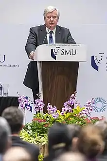 Greenwood speaking at Singapore Management University School of Law in 2018