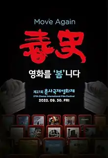 Themed as 'Move Again', The 27th Chunsa International Film Festival was held on September 30. In this edition, nominees from films released from July 1, 2021 to July 31, 2022 were selected for the main awards in 10 categories.[2] In the ceremony hosted by Kim Ye-eun and Ji Eun-ho,[3] Park Chan-wook won the best direction award for Decision to Leave.[4]