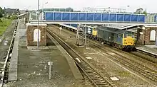 The station is covered by a long-line automatic P.A system to provide real-time train running details. Passenger information screens are also installed and there is a ticket machine available for passengers to buy tickets (card only) or a permit to travel (for cash fares). Access to all four platforms is via footbridge, so there is no step-free access to any of the platforms.[4] The former booking office at street level is now in private commercial use as a restaurant, but the platform level buildings were all demolished by 1990.[3]