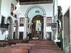 Yet, between 1694 and 1700, the Church was demolished and reconstructed in the interior, while a cross was erected in the church courtyard to represent the place of the old chancel.[1] Friar Agostinho de Monte Alverne, writing in 1695, stated that the parish included a vicar and treasurer serving a community of 100 buildings and approximately 250 residents.[1] By 1700, the church building project was concluded, it would later be referred to as the Old Church (Portuguese: Igreja Velha).[1] On 28 August 1893, this Church was hit by a tempest, leaving it roofless and causing its abandon.[1]