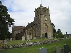 The church is built of the local limestone called hamstone. It has a tiled roof. The three-stage tower remains from the 1123 building. There were six bells in the tower, three of which are from the Purdue (Closworth) foundry, with the earliest being dated 1591.[1] Two further bells were added in 1974.[3]