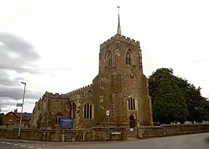 A church existed in the parish before 1120 but what can be seen today is no earlier than the 13th-century: this includes the South and North nave arcades, the North aisle and the chancel. St Mary's church is built in the Early English style with a square tower (now containing eight bells) from fieldstones and local ironstone. The South aisle and South chapel date to about 1300 while the North porch is also a 14th-century addition. Remodelling of the church in the 15th and 16th centuries affected the entire building except for the nave arcades.[1][2][4]