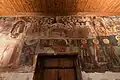 The church has been restored and enlarged several times and is difficult to be dated exactly. The eastern part is the oldest and probably dates from the 11th century. Some centuries later the church was enlarged by adding a new structure to the west. The western wall was demolished and the present narthex was built. The church was timber-roofed. The exterior is rich in design. The eastern and the western façades are crowned with pediments in the form of trefoil arches. The eastern façade is more elaborate. It comprises three high apses, the middle of which rises above the side ones. All three are decorated with ceramic plaques. A colourful effect is achieved by the mixed masonry of stone and bricks, without keeping to any fixed pattern. The decoration of the façade is the reason for defining this church as an example of the ornamental architectural style.