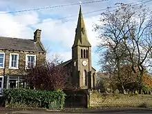 The church and graveyard were consecrated at 11 am on 3 October 1870 by Robert Bickersteth, Bishop of Ripon, although part of the graveyard had already been consecrated by 1862, and the spire was not completed.[3][16] The pews were filled to overflowing when the bishop processed into the church, followed by over thirty local clergymen, all repeating Psalm 24. The bishop read the sentence of consecration, followed by morning prayers. The choir sang, and the almost-completed organ was played for the first time by Samuel Pontefract (1815–1896) of South Crosland.[17] The bishop's sermon was based on Psalm 122, verse 1. He alluded to the recent building work, the need for support from the laity in spirit and funding, and the pressing need for the final £400 required to pay off building costs. The collection amounted to £313 7s 1d. The bishop then processed outside with the clergy, to consecrate the burial ground.[3]