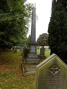 The burial ground was consecrated directly after the consecration service for the church building, on 29 July 1880.[1] The first burials took place in 1880, and these continued at least until 1993.[29] Dinah Cautley and her husband, major benefactors of the church, have a prominent grave here.[18]