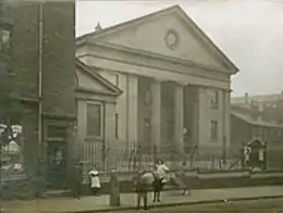 However, Dawson's views did not fit the orthodoxy of the Baptist church, so in 1845 he left, followed by much of his congregation, to become minister of the theologically liberal Church of the Saviour, a "Free Christian" church erected for him by his supporters, where "no pledge was required, of minister or congregation; no form of belief was implied by membership; no difference in creed was allowed to bar union in practical Christian work".[1] The new church building was formally opened on 8 August 1847.[2] Its interior was modelled on a lecture theatre in the University of London, with benches instead of pews, and a platform instead of a pulpit.[3]