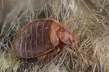The Cimicidae are a family of small parasitic bugs that feed exclusively on the blood of warm-blooded animals. They are called cimicids or, loosely, bed bugs, though the latter term properly refers to the most well-known member of the family, Cimex lectularius, the common bed bug and its tropical relation Cimex hemipterus.[2] The family contains over 100 species. Cimicids appeared in the fossil record in the Cretaceous period. When bats evolved in the Eocene, Cimicids switched hosts and now feed mainly on bats or birds. Members of the group have colonised humans on three occasions.