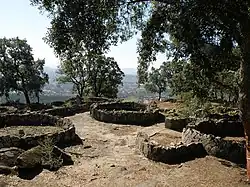 Briteiros is an unusual castros, having its streets arranged into a roughly grid pattern.[8] The "urbanized" area of the settlement includes an acropolis surrounded by the first rampart in an elevated area of about 7 hectares.