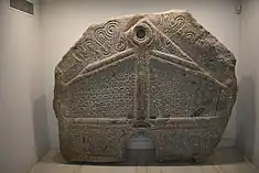 A decorated stone with swastika-like geometric figures, at the baths of Citânia de Briteiros.