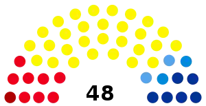 The city council is elected for a five-year term and is based on a direct choice for the candidate with a preference vote: the candidate with the majority of the preferences is elected. The number of seats for each party is determined by a mechanism of majority bonus.