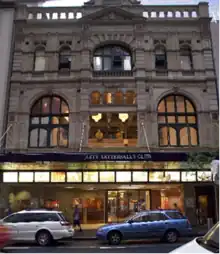 The City Tattersalls Club is a social club located in Sydney, New South Wales. The club was formed in 1895 by a group of bookmakers disgruntled with a judge's decision on a race at Kensington, New South Wales. The club named itself after the Tattersalls Club, Sydney, which was founded in 1858 and represented the horse racing establishment.[1] The club is located in the heart of the central business district at Pitt Street between Market and Park Streets.