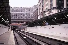 Before Holborn Viaduct closed, a new line between Blackfriars and the tunnel was constructed on a different alignment slightly to the east and at a lower elevation, providing the opportunity to build 600,000 square feet (56,000 m2) of office space above the station on a 4-acre (1.6 ha) site.[14] City Thameslink was built to replace Holborn Viaduct station. The total cost was estimated at between £360 and £450 million.[15][14] Because of a proposed routing for the second phase of the Jubilee line through the area, part of the station was built to allow for a future interchange.[16]