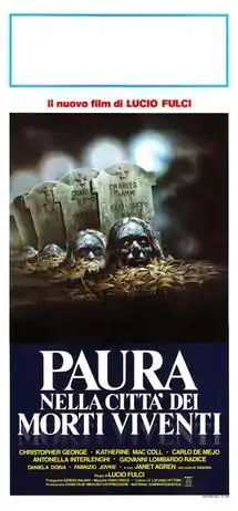 City of the Living Dead (Italian: Paura nella città dei morti viventi, lit. 'Fear in the city of the living dead', also released as The Gates of Hell) is a 1980 Italian supernatural horror film co-written and directed by Lucio Fulci. It stars Christopher George, Catriona MacColl, Carlo de Mejo, Antonella Interlenghi, Giovanni Lombardo Radice, and Janet Agren. The film follows a priest whose suicide opens a gateway to hell that releases the undead. A psychic and a reporter team up to close it before All Saints' Day.
