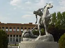 The Torch Bearers statue by Anna Hyatt Huntington located next to the Facultades entrance